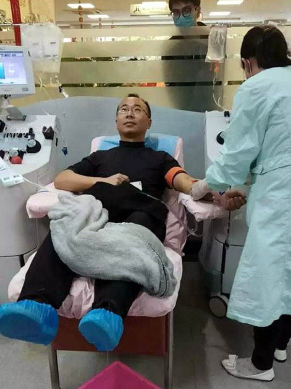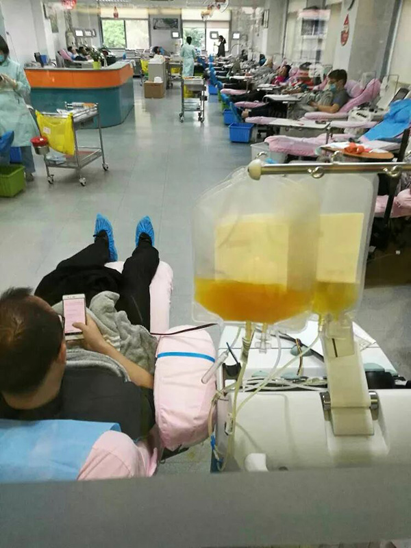 2017年4月18日四川泰華堂制藥有限公司老員工喬鐵鎖的愛人范安娜(廣漢市雒城鎮(zhèn)九小教師)突發(fā)重病,體內(nèi)血小板急劇降低,生命垂危,被送至華西醫(yī)院搶救。急需血小板的消息在公司傳開后,在公司工會的組織下,公司職工不分男女、不分血型、不分老少,踴躍報名為她捐獻血小板。由于血小板的提取對身體狀況要求非常嚴格,經(jīng)初步篩選,4月20日,18位基本符合要求的同志一大早就來到成都市血液中心抽血化驗做最后的檢查,最終有5位同志共捐獻了六個治療量的血小板。